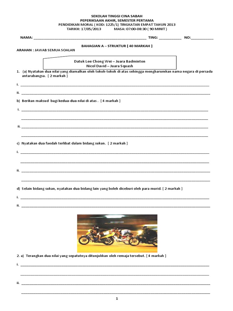Doc Soalan Struktur 1 Pendidikan Moral Tingkatan 4 Viknis Vicky Academia Edu